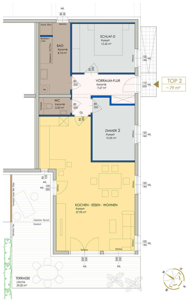 Diese einzigartige Gartenwohnung mit 79m² Wohnfläche und einem Gartenanteil von 96m² erinnert eher an einen L-Bungalow als an eine herkömmliche Eigentumswohnung. Der außergewöhnliche Grundriss bildet nicht nur die Plattform für ein individuelles Wohnen, sondern auch eine Terrassensituation ähnlich einem Patio. Somit ist mit ein wenig persönlichger Gartengestaltung ein mediterranes Wohnflair gewiss.