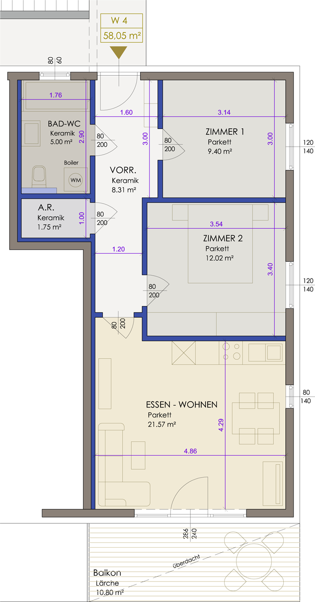» Wohnung 4 (58m²)